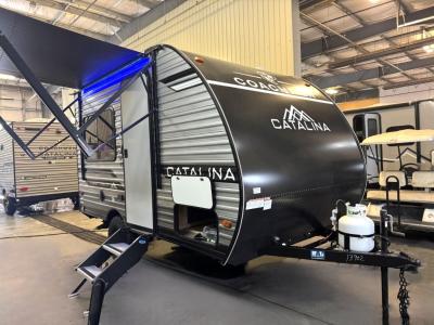 With any Catalina Summit Series 7' by Coachmen RV, you can create an easier adventure with the versatility and simplicity of the shorter lengths and lighter weights! Each includes a premium exterior graphics package, a smooth HD aluminum radius front, and EZ lube axles with leaf spring suspension. The exterior offers a heavy duty standard tongue jack, a diamond plate rock guard to protect against road debris, exterior RG-6 coax cabling and satellite prep, rear view camera prep, and flush mount baggage doors with radius corners for your outdoor gear. Inside, you will enjoy a premium JBL interior speaker, USB charging ports, seamless Thermofoil countertops throughout, a deep basin farm style sink for easy cleanup, and GE kitchen appliances. It's time to choose an affordable and maneuverable single axle trailer today!