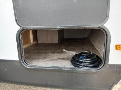 This travel trailers is perfect for a young family or smaller group. You can easily sleep four or more with the rear set of bunk beds and queen bed up front. There is also a 60" sofa for inside down-time, as well as complete kitchen and bath amenities so you can cook and stay clean while traveling. The rear corner bath features a toilet and 36" x 30" shower, and it's conveniently located next to the bunk beds which is great for little ones at night. Cooking inside will be easy with a GE stainless two-burner cooktop and single sink, plus there is also a GE microwave oven for snacks and things that you can easily warm up. If you plan to spend most of your time outdoors, you will find plenty of storage space in the front exterior storage compartment, and there is also plenty of storage inside as well.