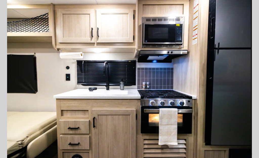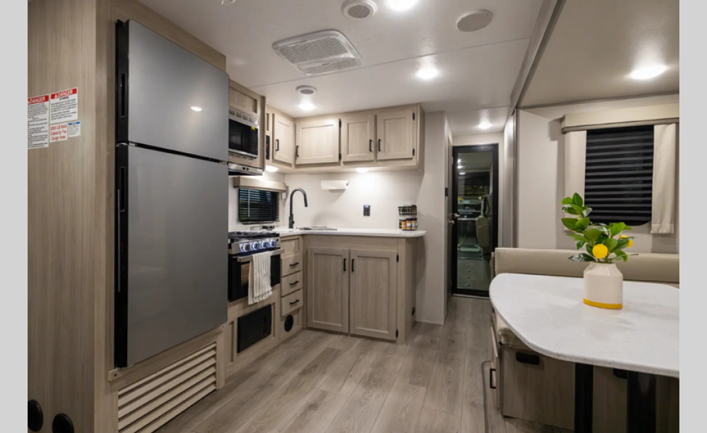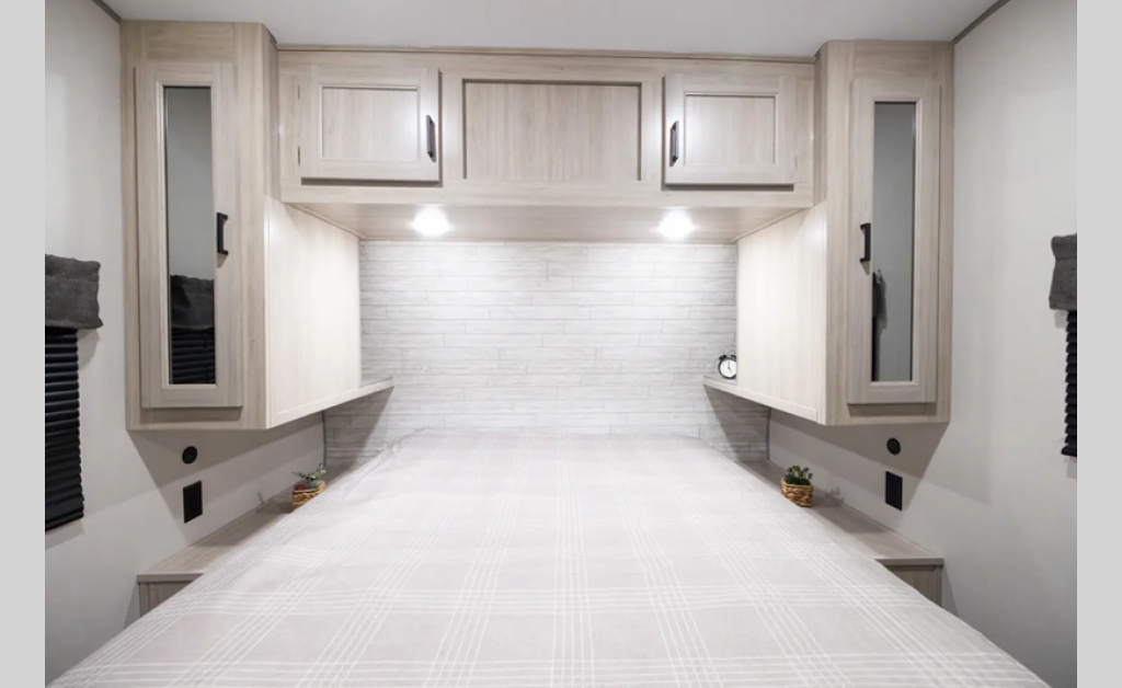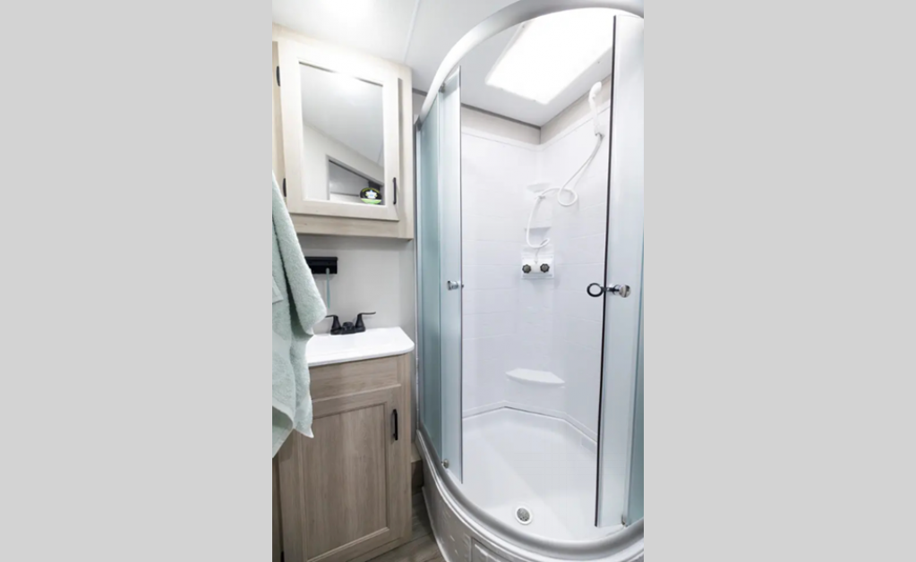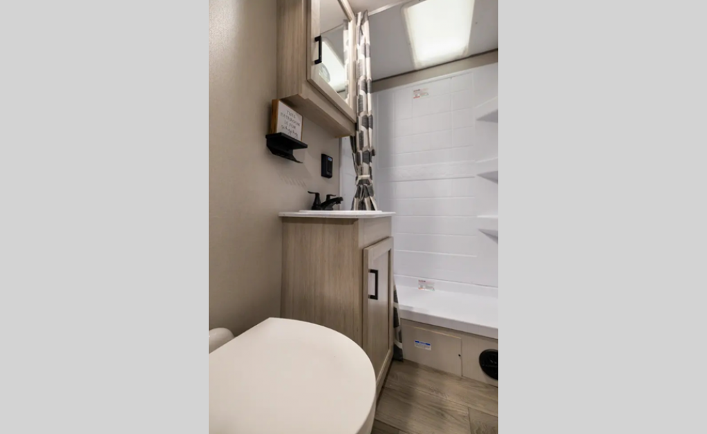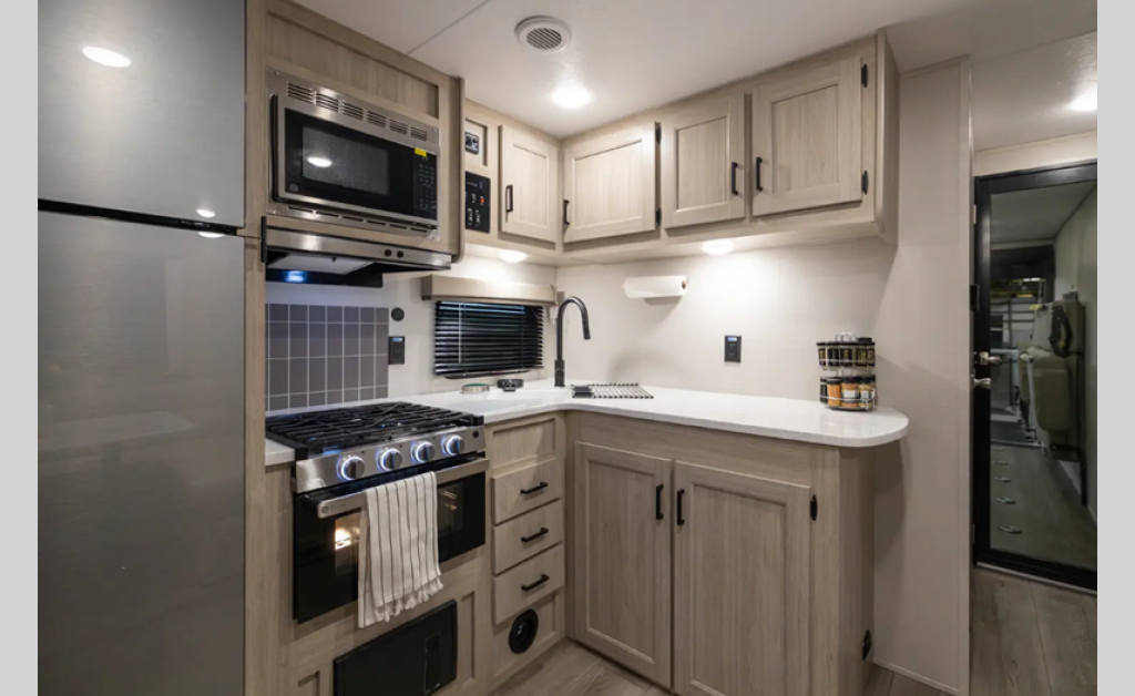 Sleeps 4 Length 29 ft 10 in Ext Width 8 ft Ext Height 10 ft 7 in Int Height 6 ft 9 in Hitch Weight 957 lbs GVWR 7900 lbs Dry Weight 5486 lbs Cargo Capacity 2414 lbs Fresh Water Capacity 44 gals Grey Water Capacity 40 gals Black Water Capacity 30 gals Furnace BTU 30000 btu Available Beds Queen Refrigerator Type GE Stainless 12V Refrigerator Size 10.7 cu ft Cooktop Burners 3 Shower Size 34" x 34" Number of Awnings 1 LP Tank Capacity 20 lbs Water Heater Type Tankless AC BTU 13500 btu Awning Info 15' Electric with Multi-Color Lights Axle Count 2 Number of LP Tanks 2 Shower Type Radius Electrical Service 30 amp Similar Floorplans