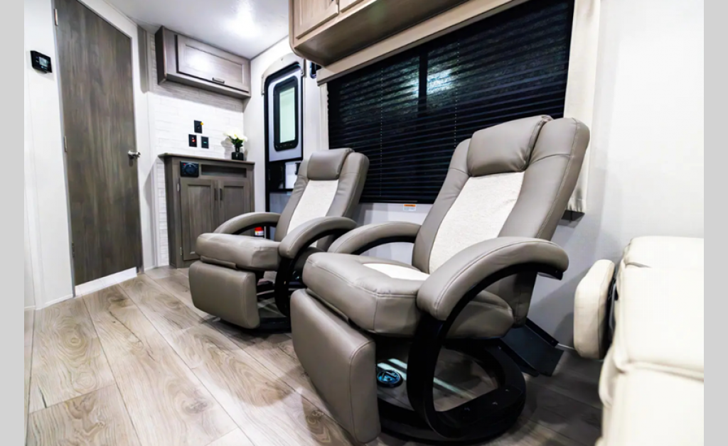 Sleeps 6 Slides 1 Length 35 ft 8 in Ext Width 8 ft Ext Height 11 ft 1 in Int Height 6 ft 9 in Hitch Weight 1162 lbs GVWR 10578 lbs Dry Weight 7578 lbs Cargo Capacity 3000 lbs Fresh Water Capacity 38 gals Grey Water Capacity 42 gals Black Water Capacity 29 gals Furnace BTU 30000 btu Available Beds Queen Refrigerator Type GE Stainless 12V Refrigerator Size 10.7 cu ft Cooktop Burners 3 Number of Awnings 1 Garage Size 11 ft LP Tank Capacity 20 lbs Water Heater Type Tankless AC BTU 13500 btu Awning Info 15' Electric with Multi-Color Lights Axle Count 2 Number of LP Tanks 2 Shower Type Tub/Shower Combo Electrical Service 30 amp Similar Floorplans