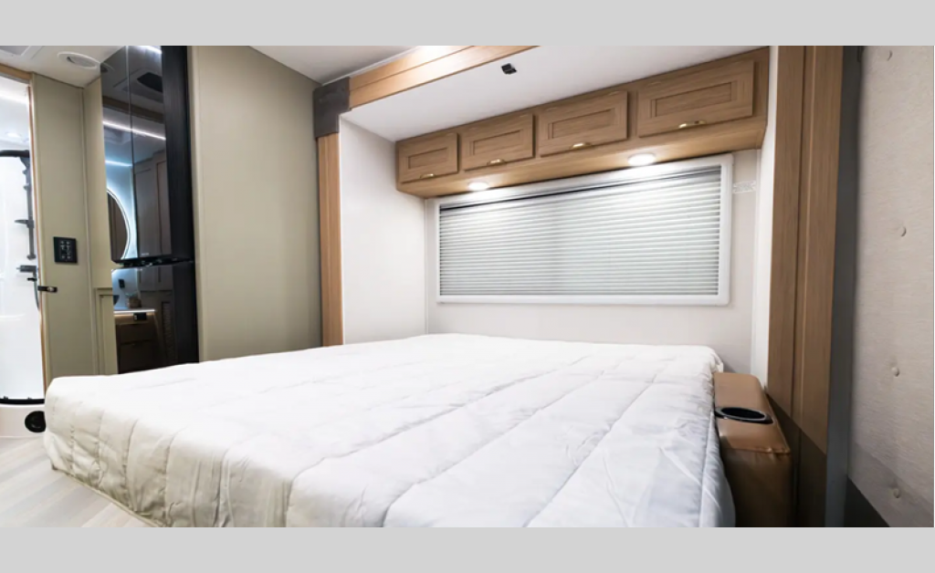 Each is built with an automatic 9G-Tronic transmission, and includes lane assist, attention assist, and adaptive cruise control for safety on the highways and in town. Some of the exterior features include upgraded MorRyde cargo doors, an armless awning, a rear fiberglass cap, and integrated fiberglass running boards. Inside you'll enjoy solid surface countertops with lit edge banding, an upgraded kitchen sink and faucet, a soft touch ceiling, and more comforts!