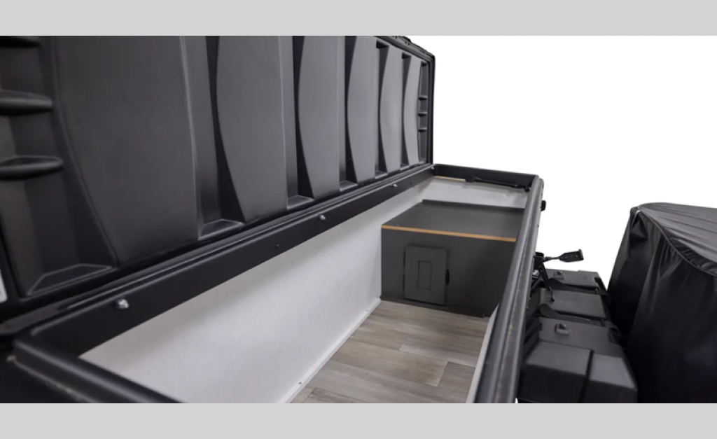 Enjoy a good night's rest each night at your comfortable bed including cushions and covers and keep your electronics charged with the USB charging ports. Some of the features you are sure to love are the fiberglass laminated roof, the spare tire w/carrier & cover, and residential style cabinet doors.