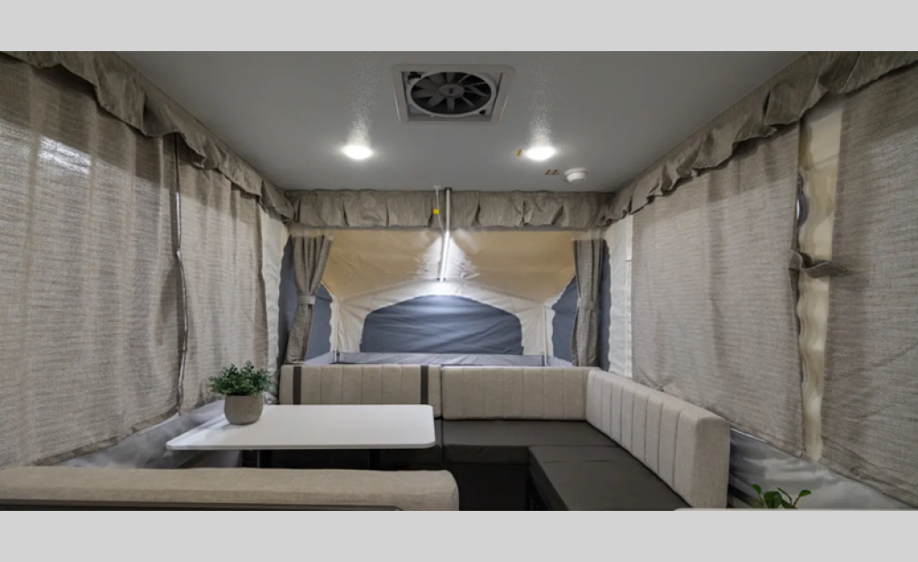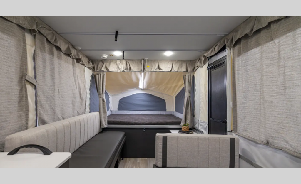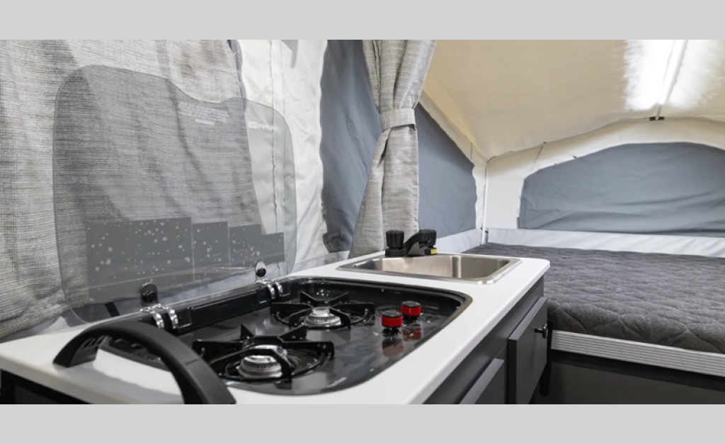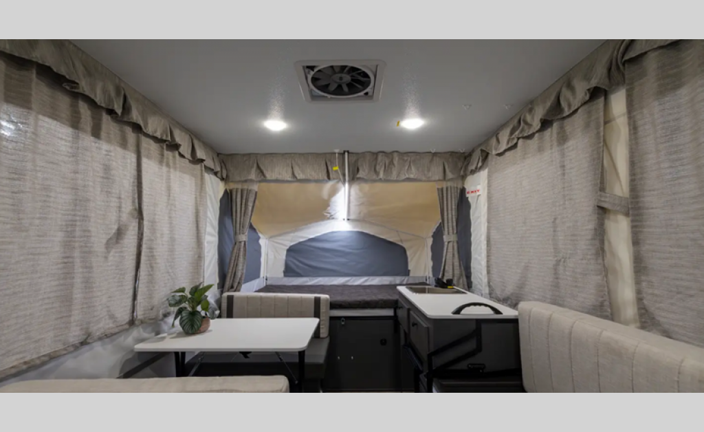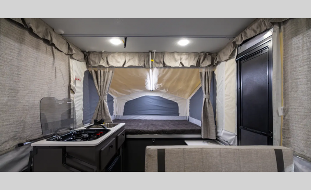 Sleeps 5 Length 11 ft 10 in Ext Width 7 ft Ext Height 5 ft Hitch Weight 250 lbs Dry Weight 1763 lbs Cargo Capacity 583 lbs Furnace BTU 20000 btu Available Beds Two Tent End Beds Refrigerator Type 12V LP Tank Capacity 20 lbs AC BTU 15000 btu Axle Count 1 Number of LP Tanks 2 Shower Type N/A Electrical Service 30 amp Open Length 17 ft 2 in -