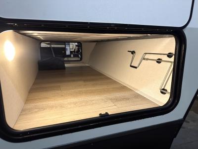 Each model is constructed with a fully laminated walkable roof, 6-sided full-aluminum frame, and a fiberglass front cap with Clear Coat for added protection. You will appreciate the slam baggage doors and 200W solar panel outside, plus there is a Climate Protection Package for better insulation. Inside, you'll love the solid surface countertops, roller shades, and soft close roller bearing drawers.