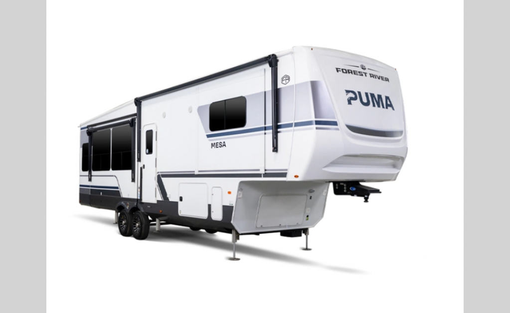 The new Puma Mesa fifth wheels by Forest River deliver a powerful combination of luxury, robust construction, and high-end features at an exceptional value! The all-welded aluminum frame superstructure and high gloss fiberglass vacuum bonded walls with Dual Azdel create a long-lasting shell.