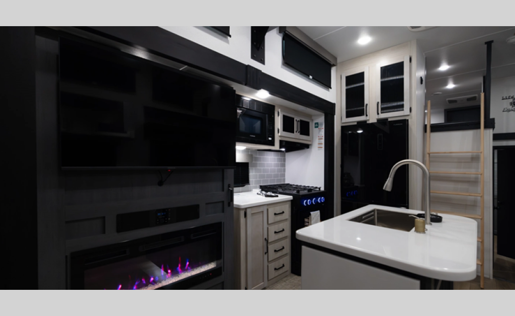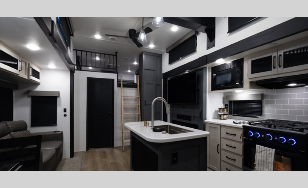 Sleeps 8 Slides 3 Length 43 ft 1 in Ext Width 8 ft Ext Height 13 ft 4 in Hitch Weight 1425 lbs GVWR 14689 lbs Dry Weight 12889 lbs Cargo Capacity 1800 lbs Fresh Water Capacity 43 gals Grey Water Capacity 70 gals Black Water Capacity 70 gals Available Beds King Refrigerator Type Residential Style Convection Cooking Yes Cooktop Burners 4 Shower Size 32" x 40" Number of Awnings 1 LP Tank Capacity 30 lbs Water Heater Type Tankless TV Info LR Smart TV Awning Info 21' Axle Count 2 Washer/Dryer Available Yes Number of LP Tanks 2 Shower Type Standard Electrical Service 50 amp Similar Floorplans