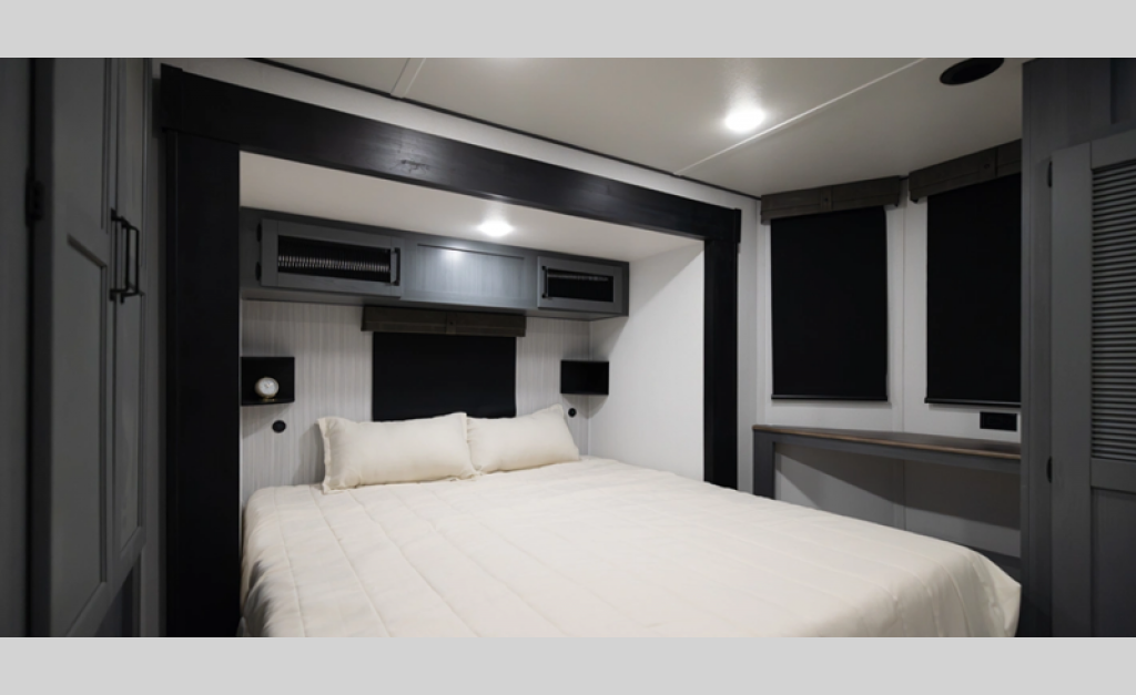 Sleeps 10 Slides 4 Length 42 ft 10 in Ext Width 8 ft Ext Height 13 ft 4 in Hitch Weight 1990 lbs GVWR 15299 lbs Dry Weight 13499 lbs Cargo Capacity 1800 lbs Fresh Water Capacity 43 gals Grey Water Capacity 70 gals Black Water Capacity 70 gals Available Beds King, Queen Refrigerator Type Residential Style Convection Cooking Yes Cooktop Burners 4 Shower Size 32" x 40" Number of Awnings 1 LP Tank Capacity 30 lbs Water Heater Type Tankless TV Info LR Smart TV Axle Count 2 Washer/Dryer Available Yes Number of LP Tanks 2 Shower Type Shower w/Seat Electrical Service 50 amp Similar Floorplans