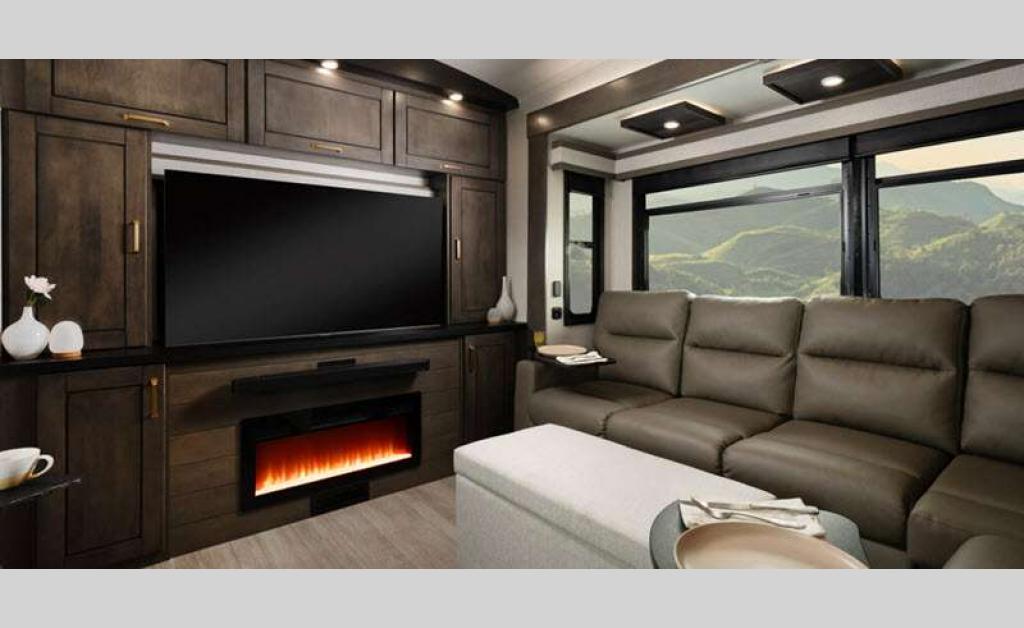 Sleeps 8 Slides 4 Length 42 ft 10 in Ext Width 8 ft 6 in Ext Height 13 ft 4 in Int Height 8 ft 6 in Interior Color Stonewall Gray Exterior Color Opt. Full Body Paint (Ash, Shadow, Glacier Blue) Hitch Weight 2705 lbs GVWR 18100 lbs Dry Weight 15650 lbs Cargo Capacity 2450 lbs Fresh Water Capacity 75 gals Grey Water Capacity 87 gals Black Water Capacity 50 gals Tire Size 215/75R17.5H Furnace BTU 40000 btu Number Of Bunks 1 Available Beds King Refrigerator Type Residential Refrigerator Size 21 cu ft Convection Cooking Yes Cooktop Burners 4 Shower Size 36" x 48" Number of Awnings 2 Axle Weight 8000 lbs LP Tank Capacity 90 Lbs. Water Heater Type On Demand Tankless AC BTU 30000 btu TV Info LR 4K Smart LED HDTV, BR 32" 4K Smart TV Awning Info 20' & 20' Electric w/ Integrated RGB LED Lights Axle Count 2 Shower Type Walk-In Shower Solar Wattage 400 watts Similar Floorplans