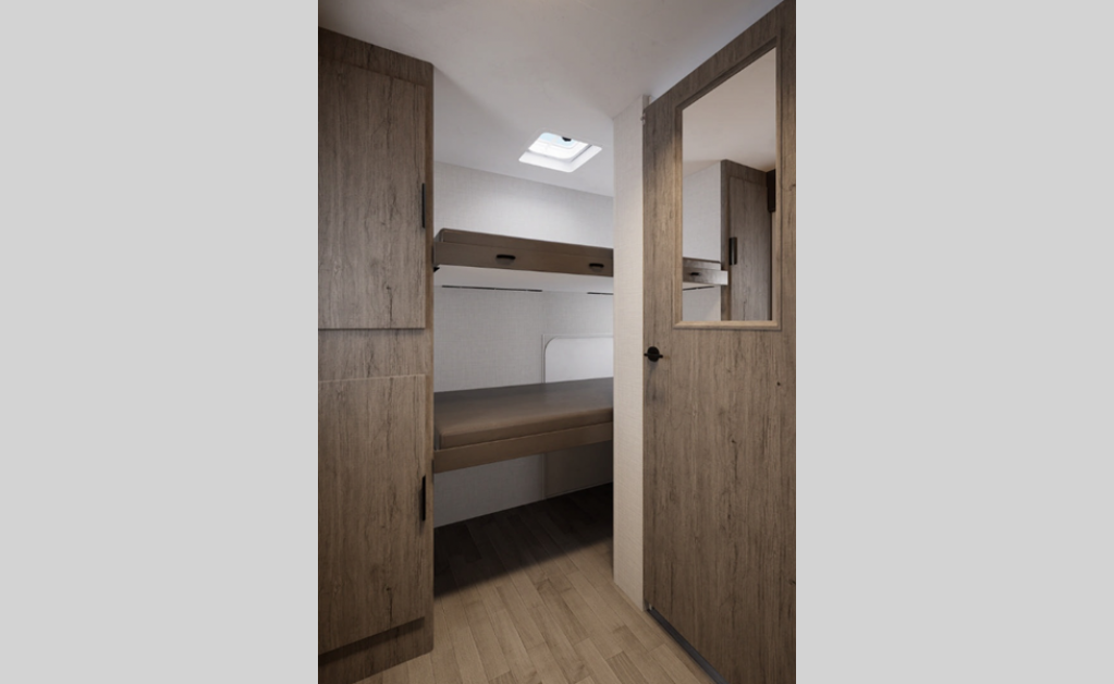 Sleeps 8 Slides 1 Length 29 ft 10 in Ext Width 8 ft 1 in Ext Height 10 ft 5 in Int Height 6 ft 8 in Interior Color Fog, Mink, Thunder Hitch Weight 580 lbs GVWR 8700 lbs Dry Weight 6115 lbs Cargo Capacity 2585 lbs Fresh Water Capacity 45 gals Grey Water Capacity 80 gals Black Water Capacity 40 gals Tire Size 225/75R15E Number Of Bunks 2 Available Beds Queen Refrigerator Type 12V Double Door Norcold Refrigerator Size 7 cu ft Cooktop Burners 3 Number of Awnings 1 Axle Weight 5535 lbs LP Tank Capacity 5 gals Water Heater Type Truma AquaGo Axle Count 2 Number of LP Tanks 2 Shower Type Standard Similar Floorplans