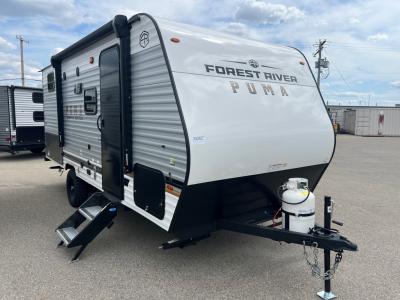 The Puma Camping Edition by Palomino offer an affordable travel trailer for rookie campers or seasoned RVers! They are built with 5/8" tongue and groove plywood flooring and a front diamond plate for added protection. There are also exterior clamp style door latches, back up camera prep, and 20 lb. LP bottles. Head inside to find Thermofoil countertops with a smooth drop edge, bedroom USB ports and outlets, and a GE appliance and kitchen package.