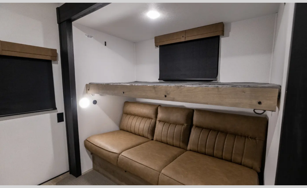 The Congoleum flooring inside is not only eye-catching, but also resilient and durable to withstand your adventrous lifestyle. You will find comfortable seating and sleeping spaces, ample storage solutions for your belongings, plus full bath and kitchen amenities to make each journey hassle-free.