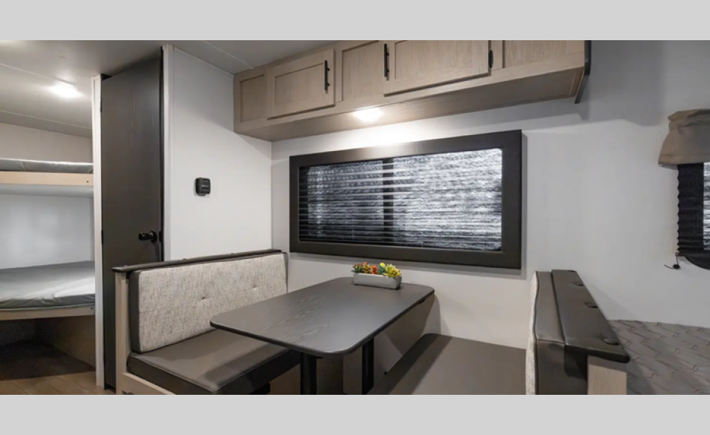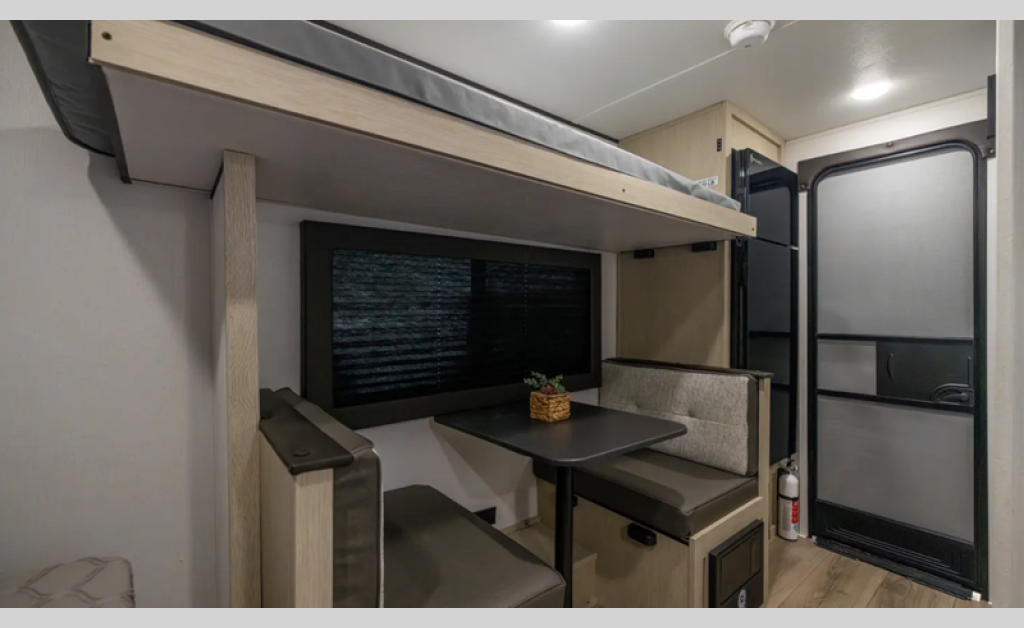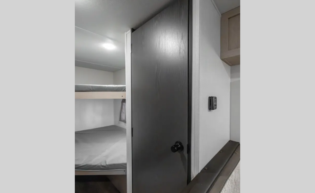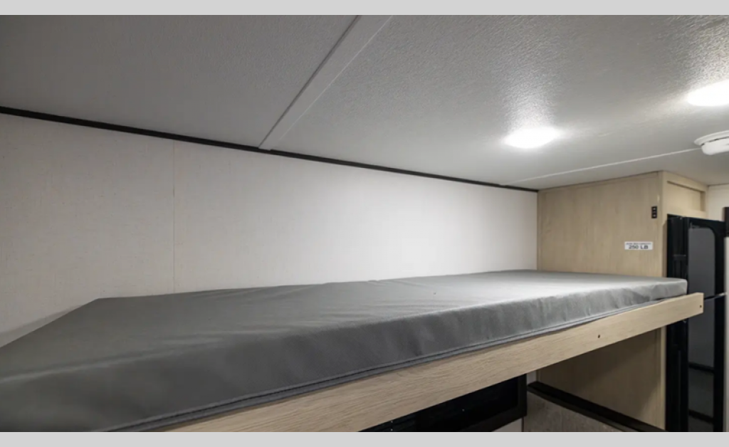 Sleeps 7 Length 22 ft 11 in Ext Width 8 ft Ext Height 10 ft 6 in Hitch Weight 529 lbs GVWR 4829 lbs Dry Weight 3778 lbs Cargo Capacity 1051 lbs Fresh Water Capacity 39 gals Grey Water Capacity 30 gals Black Water Capacity 30 gals Number Of Bunks 2 Available Beds Queen Refrigerator Type Residential Style Refrigerator Size 8 cu ft Cooktop Burners 2 LP Tank Capacity 20 lbs Water Heater Type Tankless AC BTU 8000 btu Axle Count 1 Number of LP Tanks 1 Shower Type Tub/Shower Combo Similar Floorplans