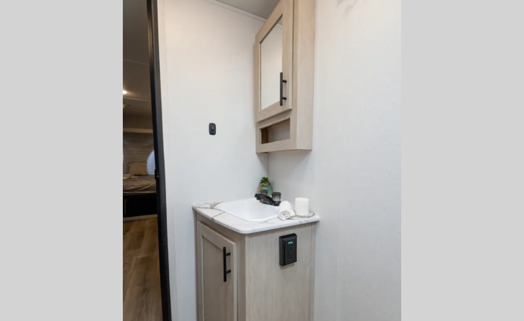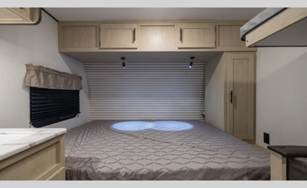 Each model includes four stabilizer jacks that will help secure your unit once you've made to the campground, and you might even want to add the optional power tongue jack in place of the manual jack for even more convenience. Inside, the pocket-bored and screwed cabinets add comfort and durability for everyday use, and the Bluetooth portable speaker will let you take your tunes with you!