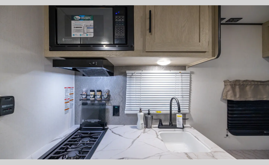 Sleeps 3 Length 23 ft 1 in Ext Width 8 ft Ext Height 10 ft 10 in Hitch Weight 532 lbs GVWR 4932 lbs Dry Weight 3787 lbs Cargo Capacity 1145 lbs Fresh Water Capacity 39 gals Grey Water Capacity 30 gals Black Water Capacity 30 gals Available Beds Queen Refrigerator Type Residential Style Refrigerator Size 8 cu ft Cooktop Burners 2 LP Tank Capacity 20 lbs Water Heater Type Tankless AC BTU 8000 btu Axle Count 1 Number of LP Tanks 1 Shower Type Standard Similar Floorplans
