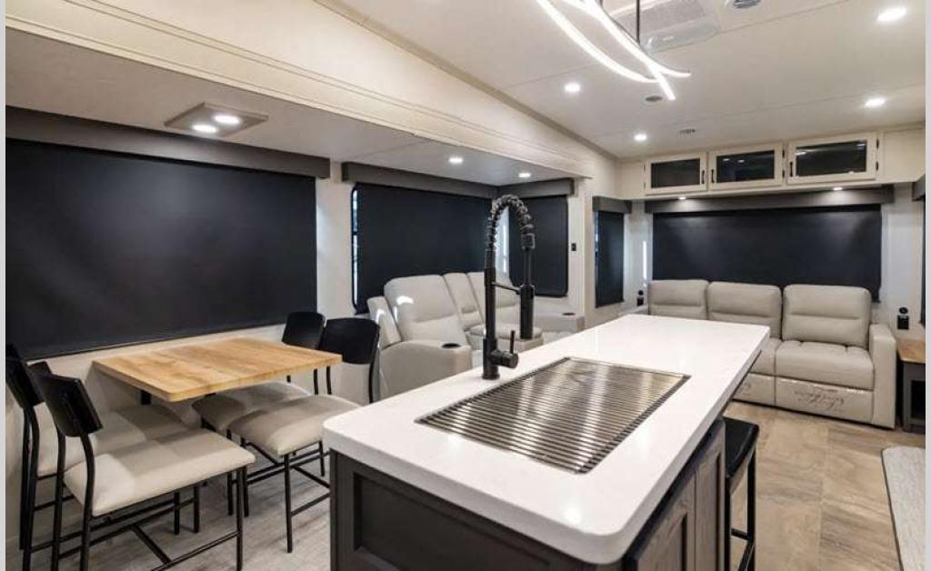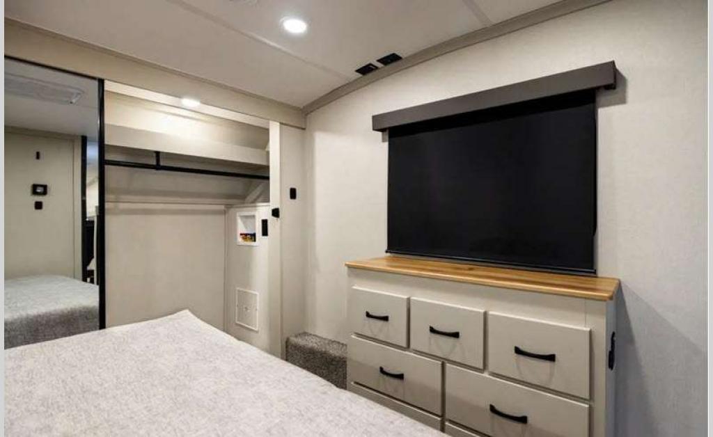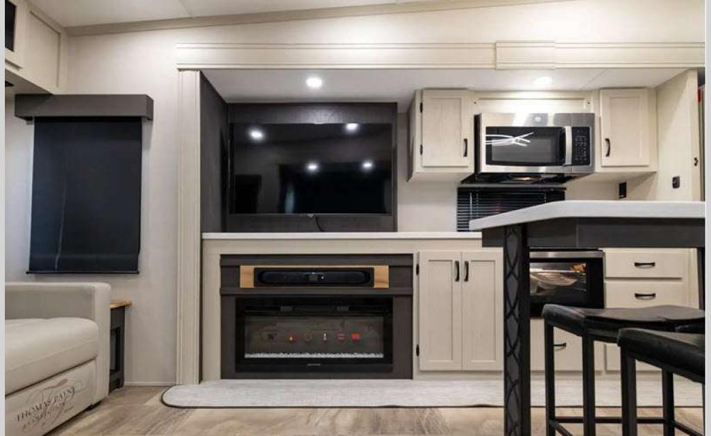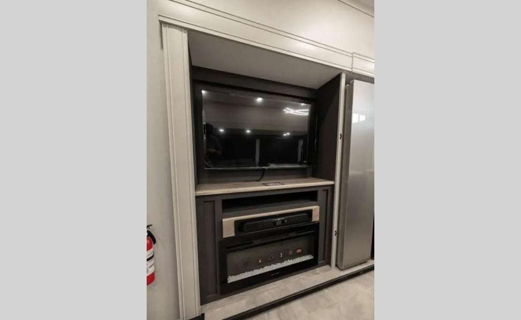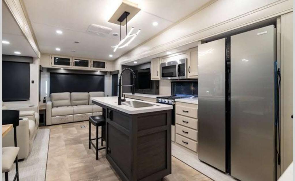 Sleeps 7 Slides 4 Interior Color Shimmer, Slate Tire Size 16" Number Of Bunks 1 Available Beds King, Trundle Refrigerator Type Side by Side Stainless Glass 12V Refrigerator Size 16 cu ft Cooktop Burners 3 Shower Size 30" x 48" Number of Awnings 1 Water Heater Type On Demand AC BTU 27000 btu TV Info LR 50" 4K Smart LED TV Awning Info 20' Electric w/LED Light Strip & One Hand Pitch Adjustment Axle Count 2 Shower Type Shower w/Seat Electrical Service 50 amp Similar Floorplans
