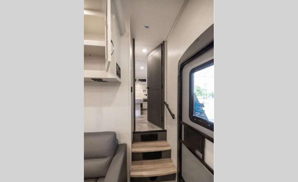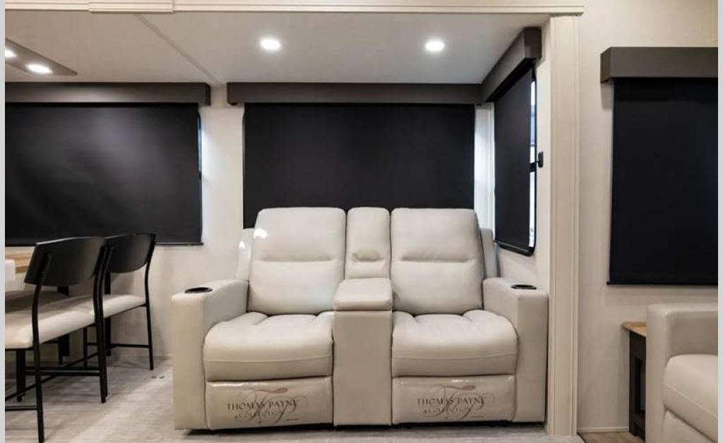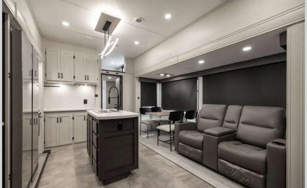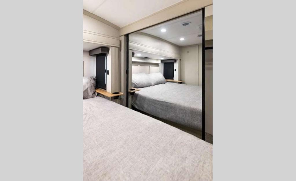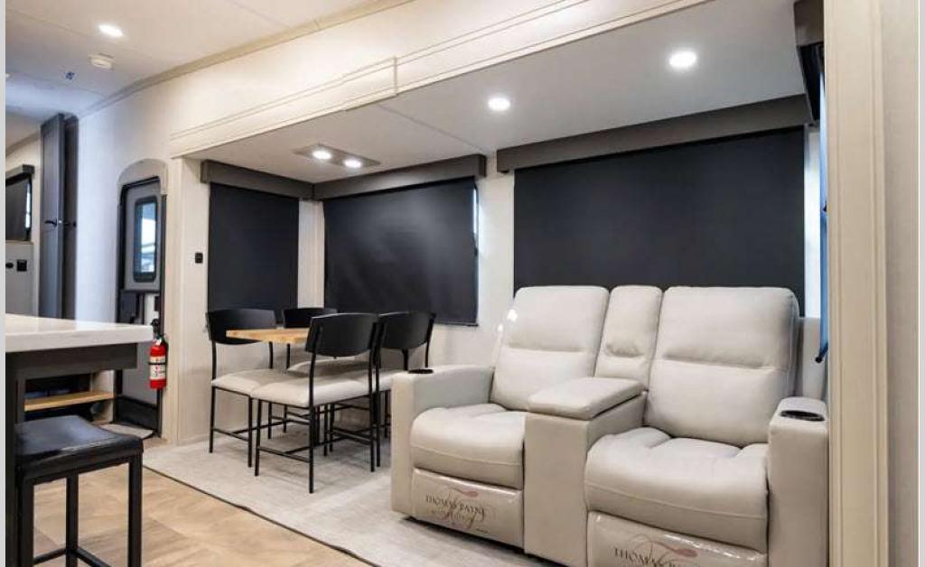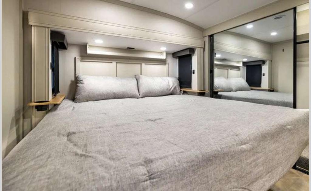 Sleeps 7 Slides 4 Interior Color Shimmer, Slate Tire Size 16" Number Of Bunks 1 Available Beds King, Trundle Refrigerator Type Side by Side Stainless Glass 12V Refrigerator Size 16 cu ft Cooktop Burners 3 Shower Size 30" x 48" Number of Awnings 1 Water Heater Type On Demand AC BTU 27000 btu TV Info LR 50" 4K Smart LED TV Awning Info 20' Electric w/LED Light Strip & One Hand Pitch Adjustment Axle Count 2 Shower Type Shower w/Seat Electrical Service 50 amp Similar Floorplans