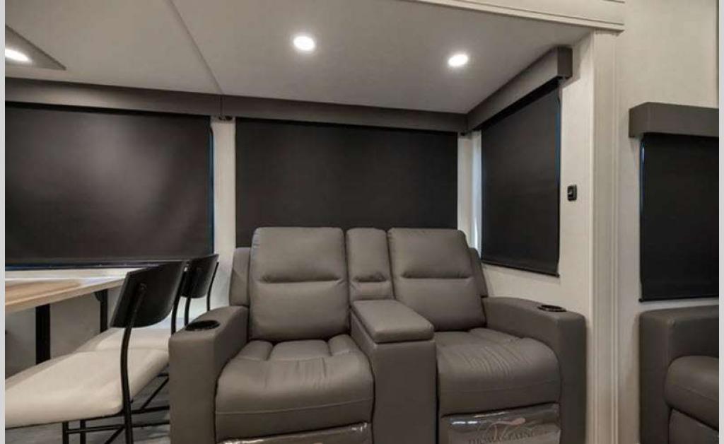 Sleeps 9 Slides 5 Length 42 ft 6 in Ext Width 8 ft Ext Height 13 ft Interior Color Shimmer, Slate Hitch Weight 2219 lbs GVWR 15000 lbs Dry Weight 13030 lbs Cargo Capacity 1970 lbs Fresh Water Capacity 48 gals Grey Water Capacity 120 gals Black Water Capacity 75 gals Tire Size 16" Number Of Bunks 3 Available Beds Queen Refrigerator Type Side by Side Stainless Glass 12V Refrigerator Size 16 cu ft Cooktop Burners 3 Number of Awnings 1 Water Heater Type On Demand AC BTU 27000 btu TV Info LR 50" 4K Smart LED TV Awning Info 17' Electric w/LED Light Strip & One Hand Pitch Adjustment Axle Count 2 Washer/Dryer Available Yes Shower Type Shower w/Seat Electrical Service 50 amp Similar Floorplans