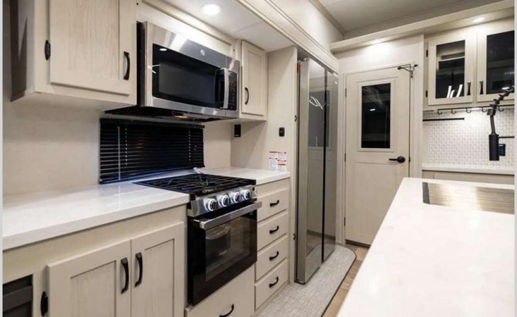 Each exterior includes a Tri-Tex powder coated frame technology for up to 5X more weather resistance and a vacuum bonded 6X double Azdel aluminum cage sidewall system. The Weather Shield has been 0 degree cold tested and 110 degree hot tested in an extreme temperature chamber to prove how well they can withstand intense weather conditions. You'll enjoy many upgraded features, including an extra deep single basin sink, a GE Profile microwave and oven, a new JBL marine grade exterior HD speaker, and the list goes on!