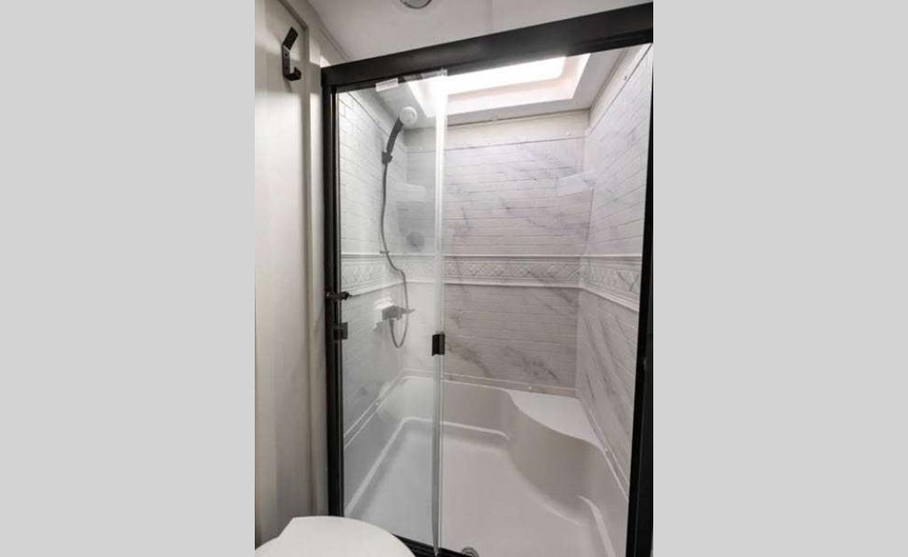 Sleeps 10 Slides 1 Interior Color Shimmer, Slate Number Of Bunks 1 Available Beds Queen Refrigerator Type GE Stainless 12V Refrigerator Size 10 cu ft Cooktop Burners 3 Shower Size 40" x 30" Number of Awnings 1 Water Heater Type On Demand AC BTU 13500 btu TV Info LR 50" 4K Smart LED TV Awning Info 16' Electric w/LED Light Strip & One Hand Pitch Adjustment Axle Count 2 Shower Type Shower w/Seat Electrical Service 50 amp Similar Floorplans