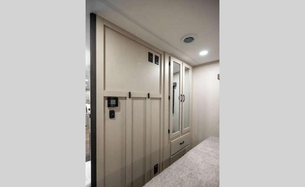 Sleeps 9 Slides 1 Length 35 ft 11 in Ext Width 8 ft Ext Height 11 ft 10 in Interior Color Slate, Shimmer Hitch Weight 1464 lbs GVWR 11000 lbs Dry Weight 8966 lbs Cargo Capacity 2034 lbs Fresh Water Capacity 40 gals Grey Water Capacity 66 gals Black Water Capacity 33 gals Number Of Bunks 3 Available Beds Queen Refrigerator Type GE Stainless 12V Refrigerator Size 10 cu ft Cooktop Burners 3 Number of Awnings 1 Water Heater Type On Demand AC BTU 13500 btu TV Info LR 50" 4K Smart LED TV Awning Info 16' Electric with LED Light Strip & One Hand Pitch Adjustment Axle Count 2 Shower Type Shower w/Seat Electrical Service 50 amp Similar Floorplans