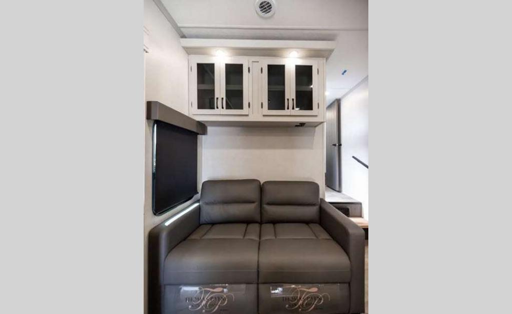 Sleeps 4 Slides 2 Length 34 ft 2 in Ext Width 8 ft Ext Height 11 ft 10 in Interior Color Slate, Shimmer Hitch Weight 1540 lbs GVWR 11500 lbs Dry Weight 9120 lbs Cargo Capacity 2380 lbs Fresh Water Capacity 40 gals Grey Water Capacity 66 gals Black Water Capacity 33 gals Available Beds Queen Refrigerator Type GE Stainless 12V Refrigerator Size 10 cu ft Cooktop Burners 3 Number of Awnings 1 Water Heater Type On Demand AC BTU 13500 btu TV Info LR 50" 4K Smart LED TV Awning Info 11' Electric with LED Lights Axle Count 2 Shower Type Shower w/Seat Electrical Service 50 amp Similar Floorplans