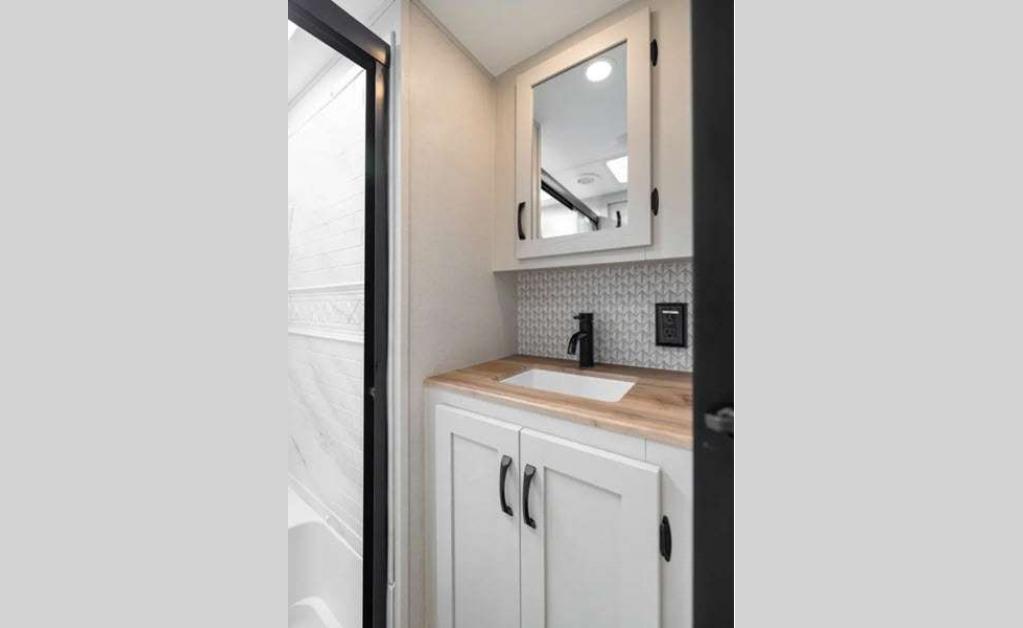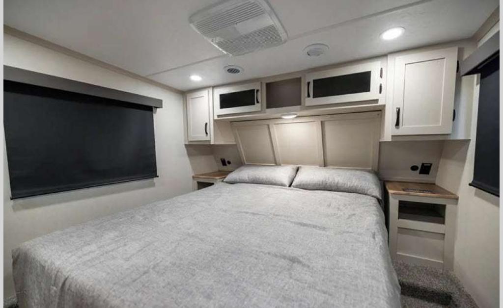 The design of the Tri-Tex powder coated frame technology is up to 5X more weather resistant, plus the vacuum bonded and aluminum framed sidewalls come with Azdel composite panels. There is also Road Armor suspension by Trail Air that will provide smooth towing from home to campground. Each model also includes slow rise blackout roller night shades, a large shower with sliding glass doors, and a residential-size mattress for all-around comfort!