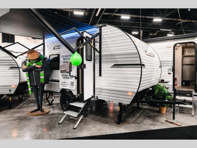 This lightweight travel trailer is perfect for two to three campers each night! You will sleep soundly on the front 54" x 74" bed with an overhead shelf and a closet for your things. Whip up eggs and bacon on the two burner cooktop in the morning, then dine at the 30" booth dinette. This can also double as sleeping space for an overnight guest or two little ones! The private bath with a 24" x 32" shower and a toilet will let you freshen up each day, and the double sink in the kitchen provides a place to wash your hands and teeth at night. You will also appreciate having a 4.3 cu. ft. 12V refrigerator to keep your food fresh and a 5K BTU wall A/C to keep you comfortable all summer long!