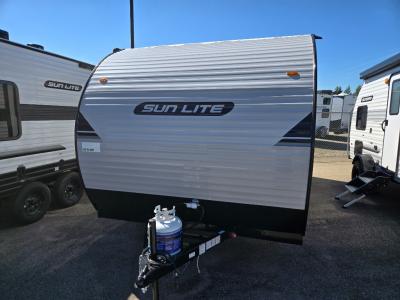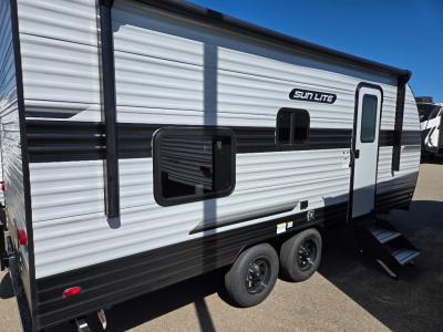 Each Sun Lite LTD travel trailer by Sunset Park RV is made with flexibility in mind. These lightweight models weigh under 3,000 lbs. for easy towing, and they offer best-in class interior storage for all your belongings. They are built with a one-piece PVC roof membrane and a durable rock guard that will help protect against rock and debris on the way to the campground. There is also an electric awning outside, along with a 100-watt solar kit, an outside shower, and more convenient features. You'll find a power roof vent in the bath, stylish window treatments, ball bearing drawer guides, and LED lights to name a few interior comforts.
