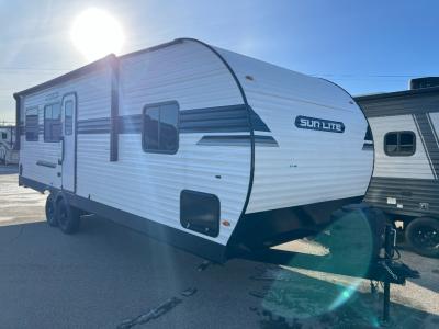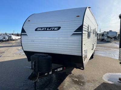 You can trust the build and enjoy your experience with any one of these Sunset Park RV Sun Lite travel trailers! Their aerodynamic profile is not only easy to haul, but also saves on fuel. They are built to withstand years of traveling even though they are lightweight with a diamond plate rock guard, a one piece PVC roof membrane, Dexter Spring-Leaf axles, and tinted safety glass windows. Some comfort standards you are sure to enjoy are the two-burner stove top range with hood, light and fan, plus the refrigerator and microwave, and an outside shower to help keep the dirt outdoors where it belongs.